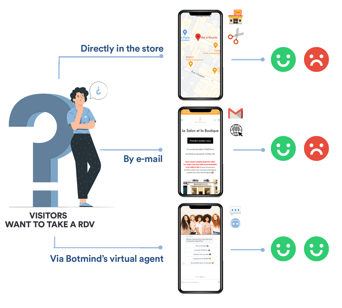 Each month on the 1st, Bar à Boucle opens its salon for hair appointments. This period marks a peak in activity, generating numerous booking requests that Ambre, the customer service manager, used to handle manually through emails and social media messages.