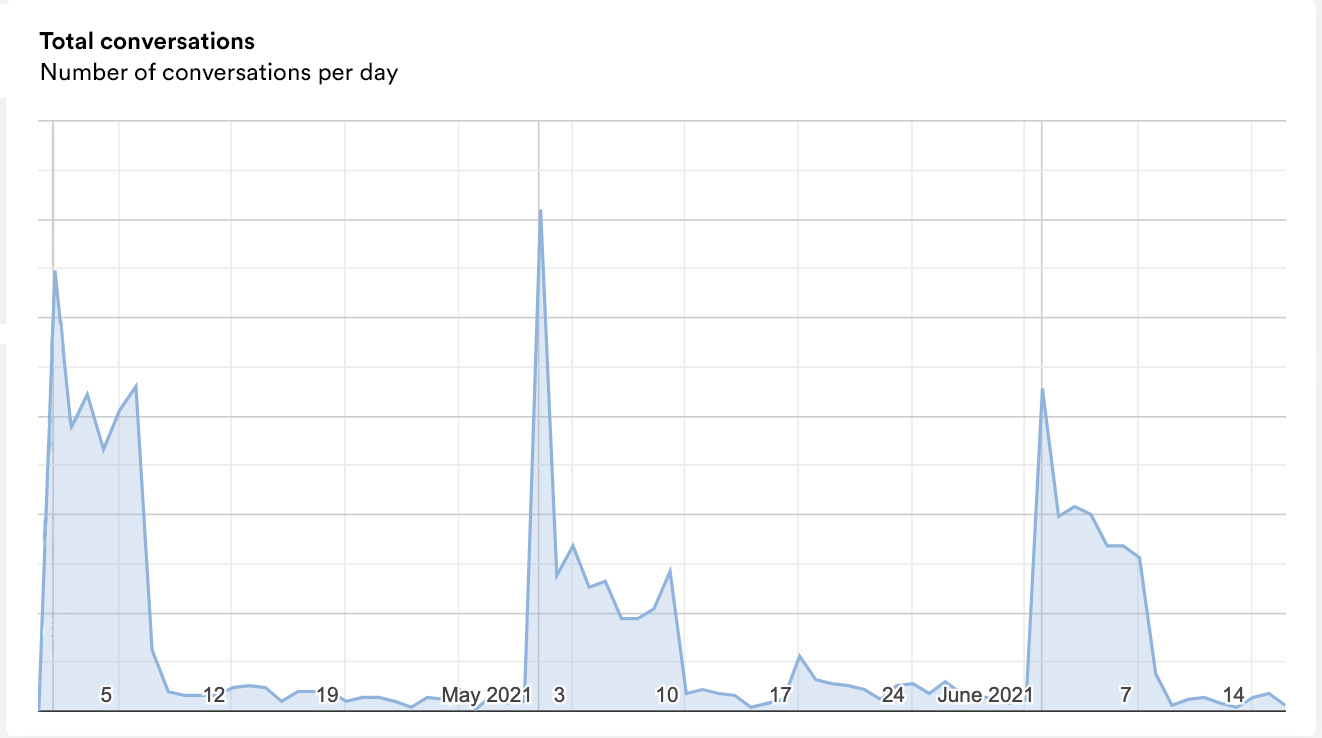 Triggers—small notification bubbles initiated by the virtual agent—engage customers throughout their online journey and facilitate appointment bookings. In May 2021, these triggers were responsible for generating 75.5% of all automated conversations.