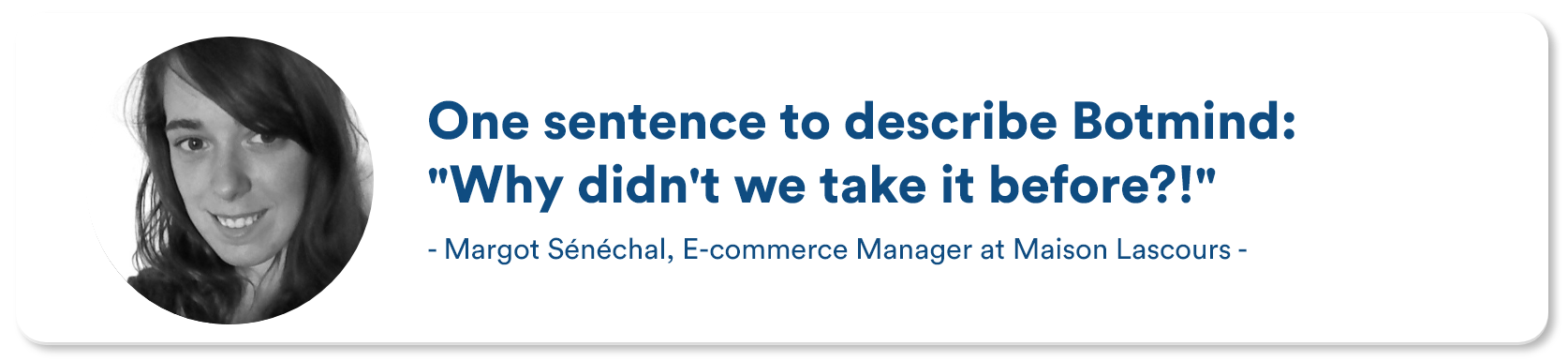 Maison Lascours can also count on the support of the Botmind team to automate its customer relations. The Botmind team listens to customers' requests and is very reactive to ensure quick and efficient support. According to Margot, “It is rare to work with a company that is so professional.” The Botmind team is very proud of Maison Lascours’ growth.