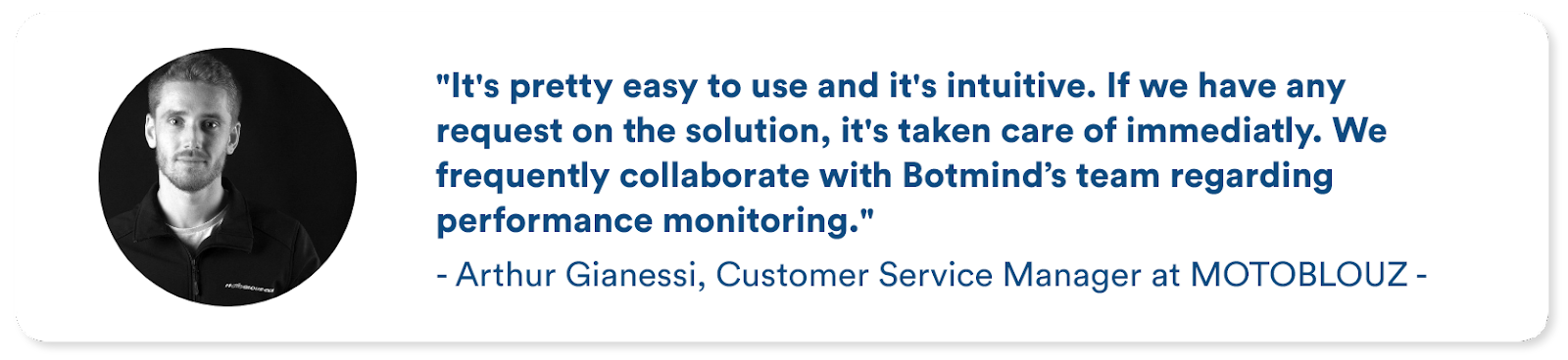 The integration was quick and easy; Motoblouz was guided through the entire process of installing the Botmind widget and continues to stay in regular contact with the Customer Service Department. Today, Botmind constantly listens to its customers and considers their remarks and suggestions.