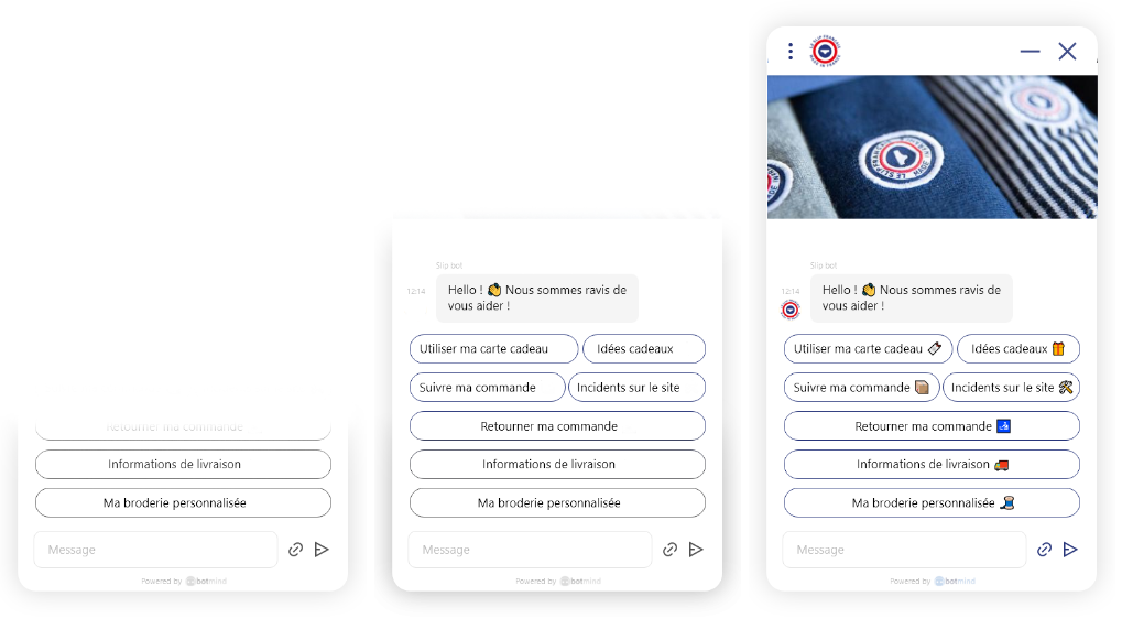 Notre chatbot se distingue par sa capacité à s'adapter au design de votre site. Pas besoin d'être un expert en graphisme pour créer un widget séduisant. Rendez-vous simplement dans l'onglet "Widget" de votre tableau de bord Botmind pour :