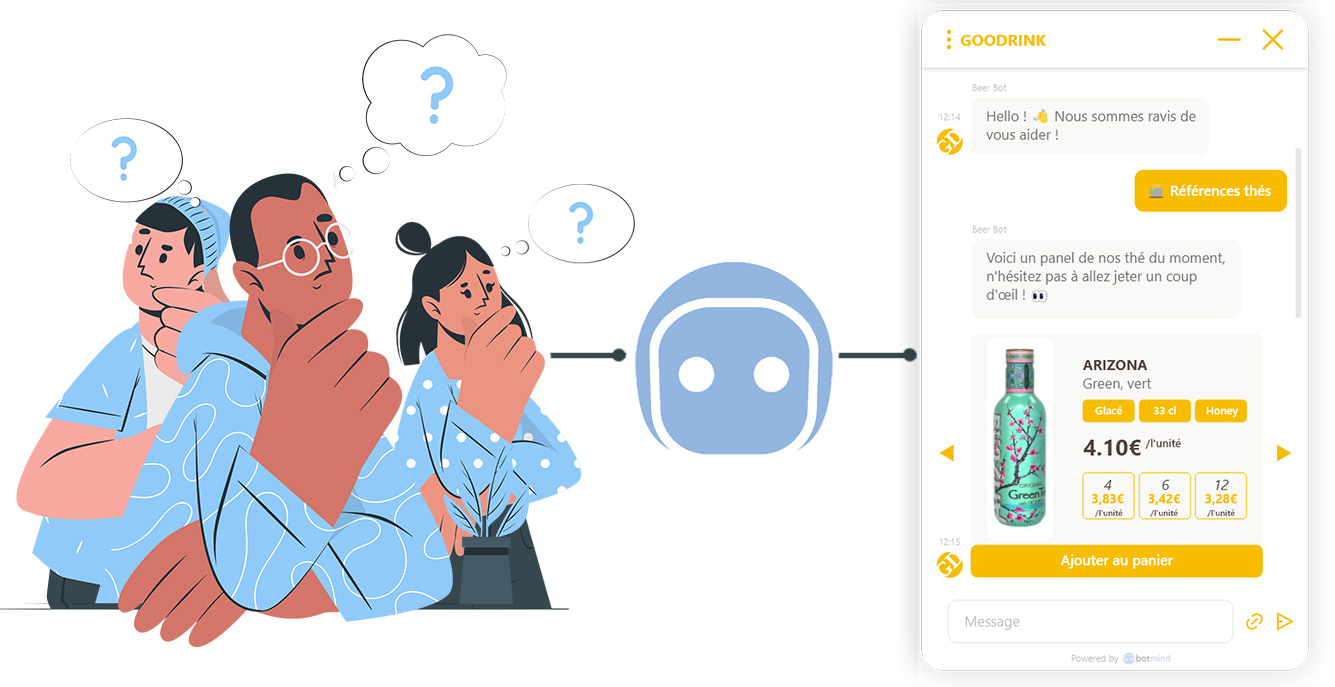 Les fêtes ou les soldes approchent et vos clients ont plus que jamais besoin de conseil et d’assistance ? L’agent conversationnel Botmind a ce qu’il vous faut. Il est possible de mettre en place des parcours dédiés au conseil en fonction des événements et de la saisonnalité afin d’améliorer la relation client. Ces parcours facilitent l’achat en proposant différentes solutions en fonction des besoins des clients (budget, préférences, âge, etc).