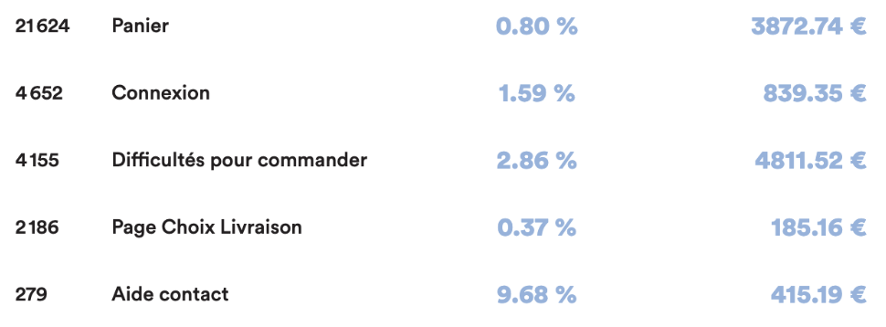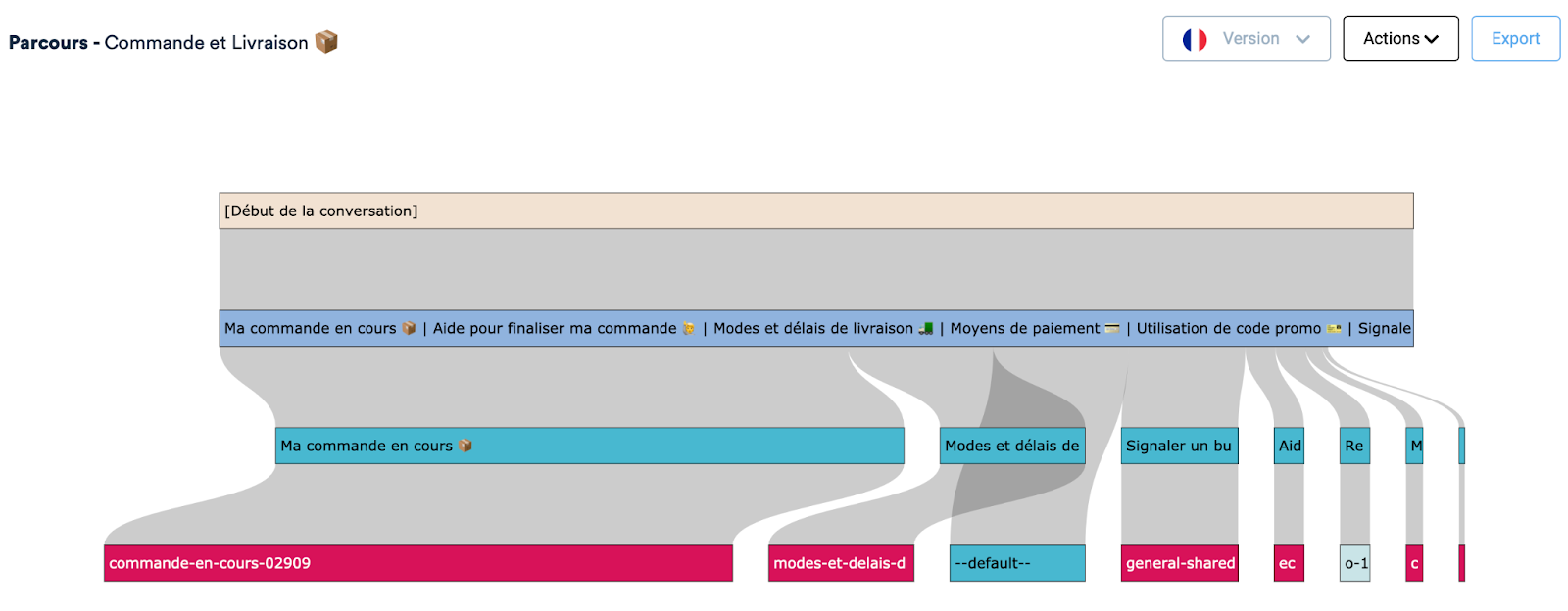 Un graphique est aussi mis à jour en temps réel pour illustrer visuellement les chemins empruntés par les utilisateurs dans le widget. Ci-dessous, vous pouvez voir comment l’utilisateur se comporte dans le parcours : commandes et livraison. Pas besoin d’être un expert en analyse, vous avez toutes les données en main !