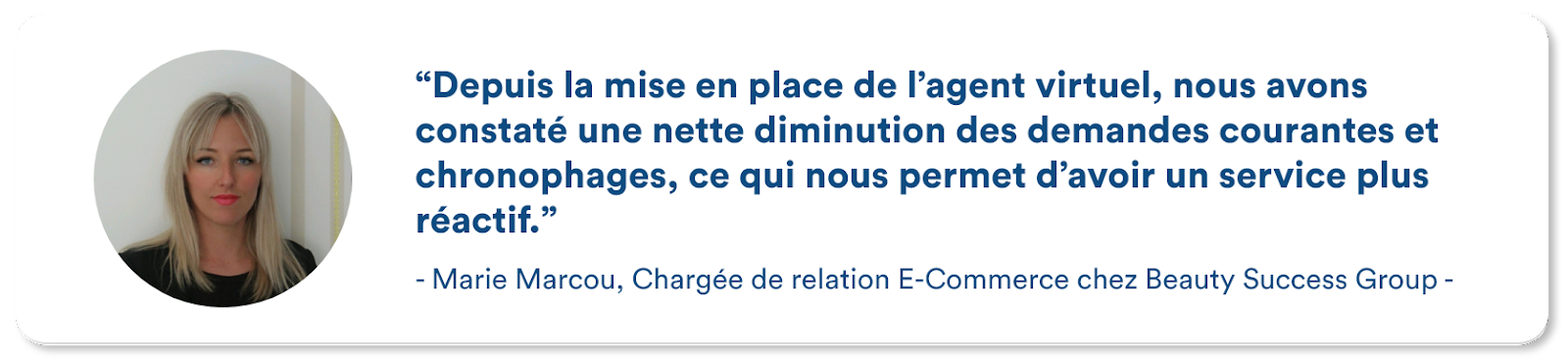 L’intégration de l’agent virtuel sur beautysuccess.fr a permis à la marque de faire gagner du temps à ses équipes de support. Ces derniers peuvent se concentrer sur des cas concrets avec une grande valeur ajoutée. Les clients, quant à eux, peuvent profiter d’une expérience client omnicanale à la hauteur de leurs exigences et des standards de la marque. Ils sont rassurés et accompagnés durant toutes les étapes du parcours d’achat. Chez Botmind, nous sommes très fiers d’accompagner des acteurs majeurs du commerce en France comme Beauty Success.