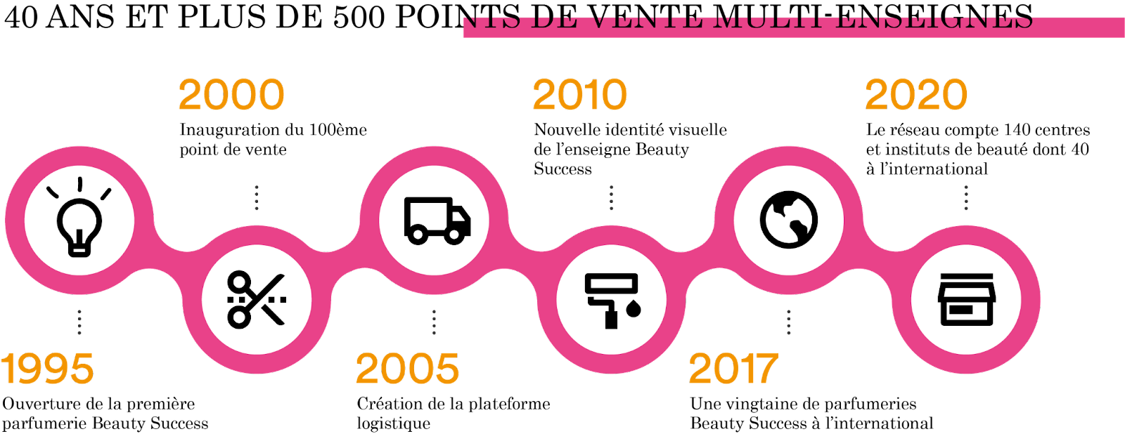 Beauty Success Group, c’est 25 ans d’histoire familiale issue du cœur de la France, plus spécifiquement dans le Périgord. Fort de son succès, l'enseigne est aujourd’hui le premier réseau de parfumeries-instituts en région avec des partenaires franchisés. Pour autant, l’entreprise n’en oublie pas ses valeurs et travaille étroitement avec des acteurs locaux qui sont devenus de véritables partenaires au fil du temps. L’entreprise accorde également une réelle importance à créer un lien de proximité avec ses clients. La marque place l’expérience client au cœur de ses priorités et souhaite améliorer continuellement le service et les conseils proposés. Aujourd’hui le groupe rassemble plus de 300 parfumeries et instituts de beauté.