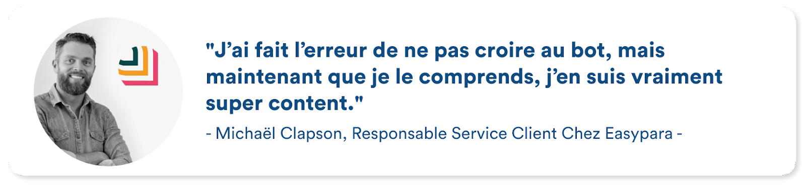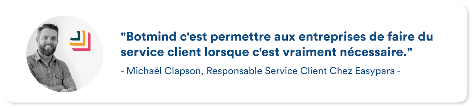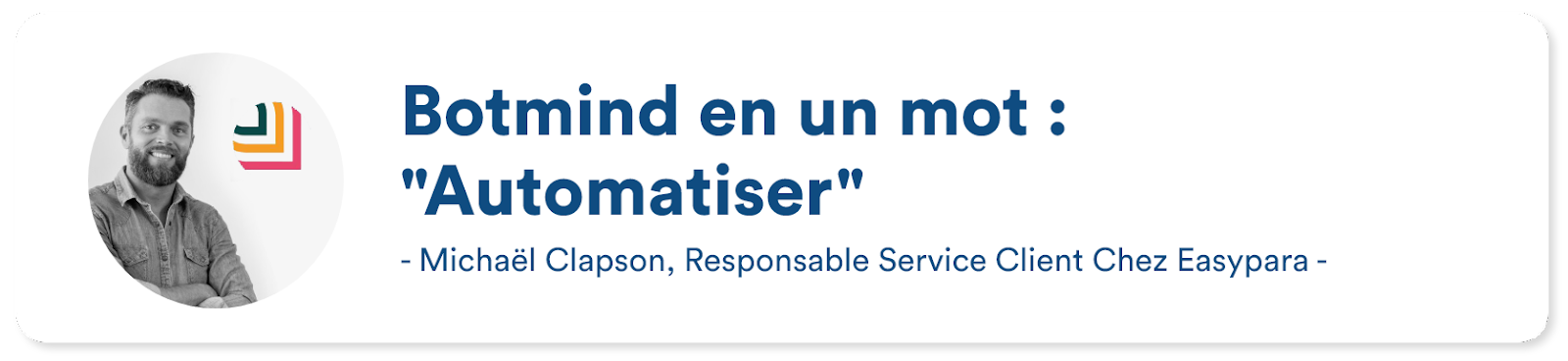 EasyPara, site international, a choisi Botmind pour assister ses équipes de support client et fournir une expérience client sans faille. L’agent virtuel, disponible via le widget Botmind, a permis aux clients de contacter le support directement sur le site web. En peu de temps, de nombreux clients ont pris pour habitude d’utiliser le live chat afin d’obtenir des réponses aux questions qu’ils se posent, avant même de contacter les équipes de support par mail ou par téléphone. Plus rapide et plus efficace que le téléphone ou le mail, l’agent virtuel permet à l’entreprise d’automatiser les réponses aux questions fréquentes et chronophages et d’avoir un reporting précis concernant les demandes des clients pour améliorer sans cesse les processus. Dans le futur, l’entreprise veut poursuivre ce partenariat pour ajouter des fonctionnalités et toujours augmenter son taux d’automatisation. Chez Botmind, nous sommes fiers d’accompagner au quotidien EasyPara dans son développement en France et son rayonnement à l’échelle internationale.