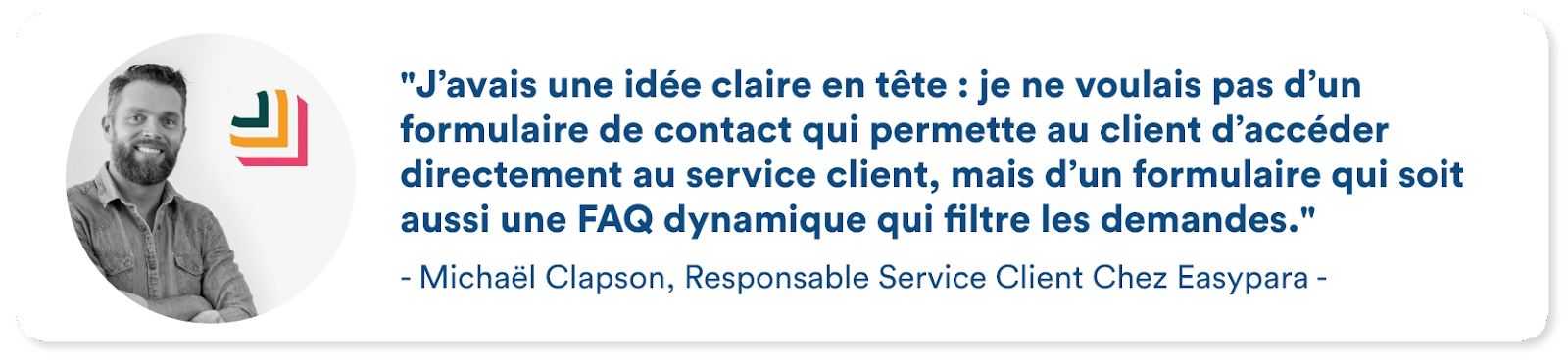 Auparavant, sur le site web d’EasyPara, les informations pour contacter le support client étaient difficilement trouvables. Les clients contactaient beaucoup les conseillers par le canal e-mail, qui est asynchrone et nécessite plus de complexité dans le traitement. Ce canal e-mail est aussi chronophage à traiter tout comme les appels entrants, même si parfois les clients appellent pour des questions “simples” dont la réponse se trouve déjà dans la FAQ du site. Cela prenaient donc du temps aux conseillers du service client qui devaient traiter toutes les demandes entrantes, majoritairement par téléphone. La marque a voulu intégrer une solution d’automatisation des questions fréquentes pour aider les conseillers du support et proposer aux clients un canal de communication plus actuel.