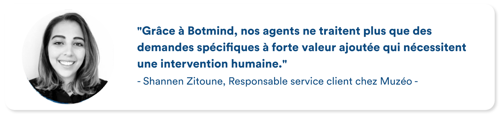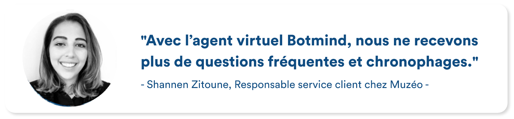 Muzéo et les équipes e-commerce de l’entreprise peuvent compter sur l’agent virtuel Botmind pour automatiser les réponses aux questions fréquentes et chronophages reçues au quotidien. Les différentes fonctionnalités qu’offre l’agent virtuel ont permis au site e-commerce d’optimiser l’expérience client en avant-venter et après-vente, de faciliter considérablement l’accès à l’information pour ses visiteurs et d’augmenter son taux de conversion. Dans le futur, l’entreprise aimerait explorer davantage de possibilités en ajoutant encore plus de personnalisation dans les parcours produits et en déployant encore plus de fonctionnalités.