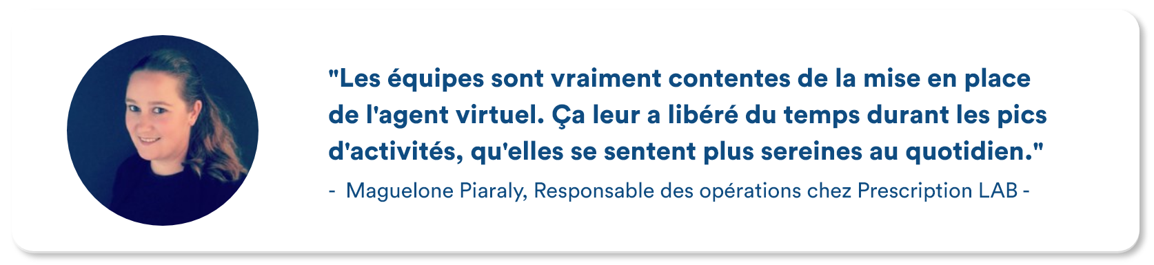 Grâce à son approche hybride, l’agent conversationnel automatise les réponses aux questions fréquentes et chronophages et redirige les questions à forte valeur ajoutée vers les équipes du site e-commerce sous forme de tickets complets, prêts à être traités. “Cela permet de les soulager physiquement et mentalement” et de leur “libérer du temps” pour s’occuper des demandes complexes et d’autres projets annexes. D’ailleurs, durant le mois de novembre 2022, l’agent conversationnel a permis aux équipes de Prescription Lab d’économiser plus de 16h de travail, ce qui équivaut à plus de 2 jours de travail à temps plein.