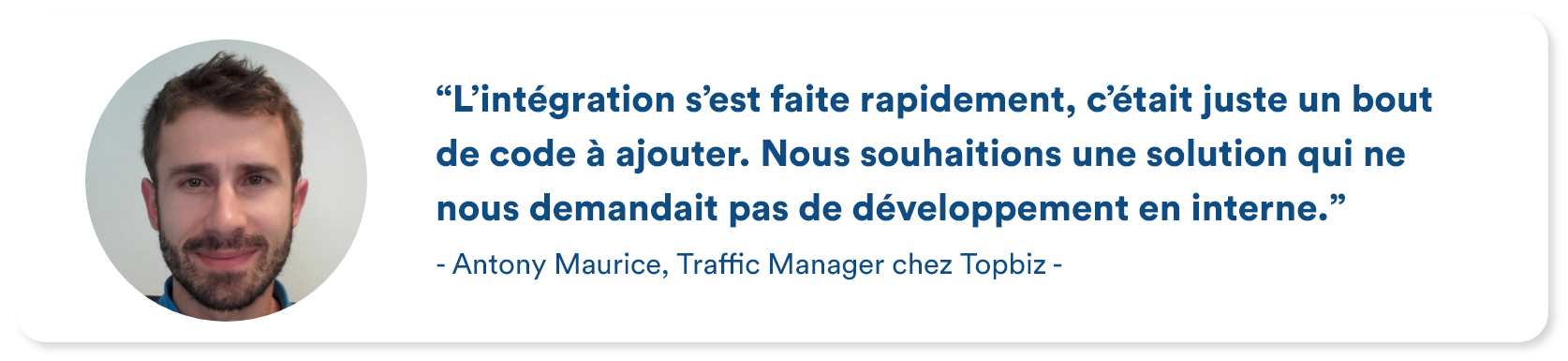 L’intégration s’est même faite plus rapidement que prévu avec un lancement en mars au lieu de début avril. Un Account Manager continue d’accompagner Topbiz au quotidien pour les aider à développer la meilleure expérience client possible.